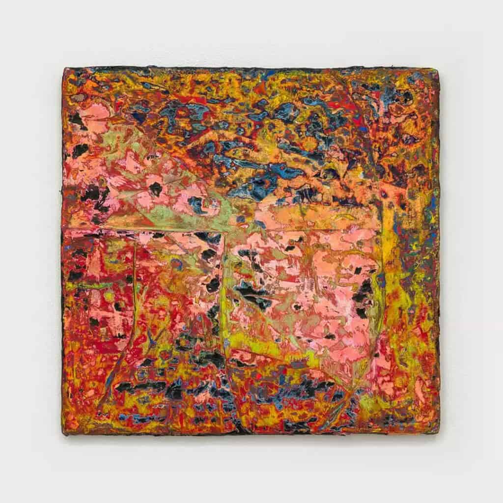 Charlie Boothright: “The painting process means everything to me — it is the work. I love time spent in the studio with dripping paint, just thinking, tuning into the dialogue between yourself and the materials. I often combine natural materials with paint which lend it a richer presence. It forms grittier areas that mimic both nature and the body: a scarred rock face, or an open wound. This exploration of organic, raw emotion and landscape is really important to me. My paintings spend a lot of time on the floor, picking up leftover debris. I also hold the paintings up, or press canvases against each other under my body weight: I like referencing higher forces at play like nature and gravity. For my paint, I work with raw pigment, throwing it on just about everything and adding linseed oil. I use my hands and the work will interact with itself: I’m simply the force binding it together.”