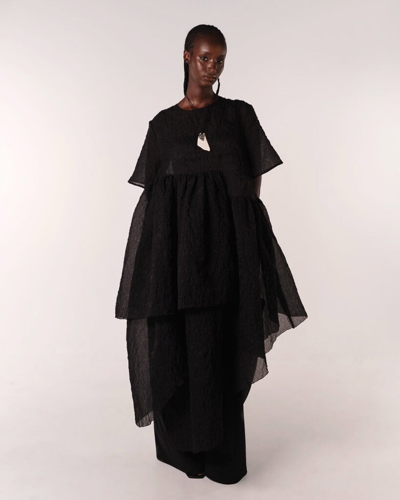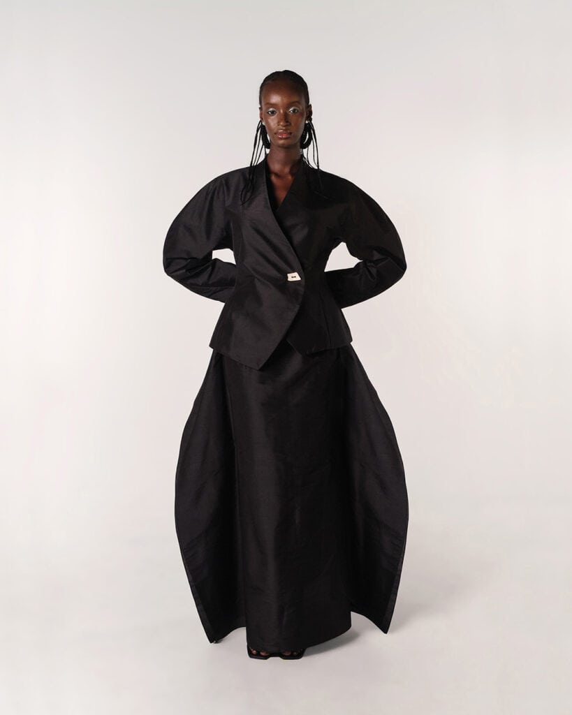 Timelessness. I want people to cherish these pieces for years to come, so I design pieces that are unique and sculptural and that can work hard in your wardrobe, one day, being passed on to someone you love so that they can continue the story. I design pieces that are adjustable wherever possible. Our bodies are designed to change and I think our clothes should be too. I only design in black, as it’s timeless and if you love black, you’ll never not love black.