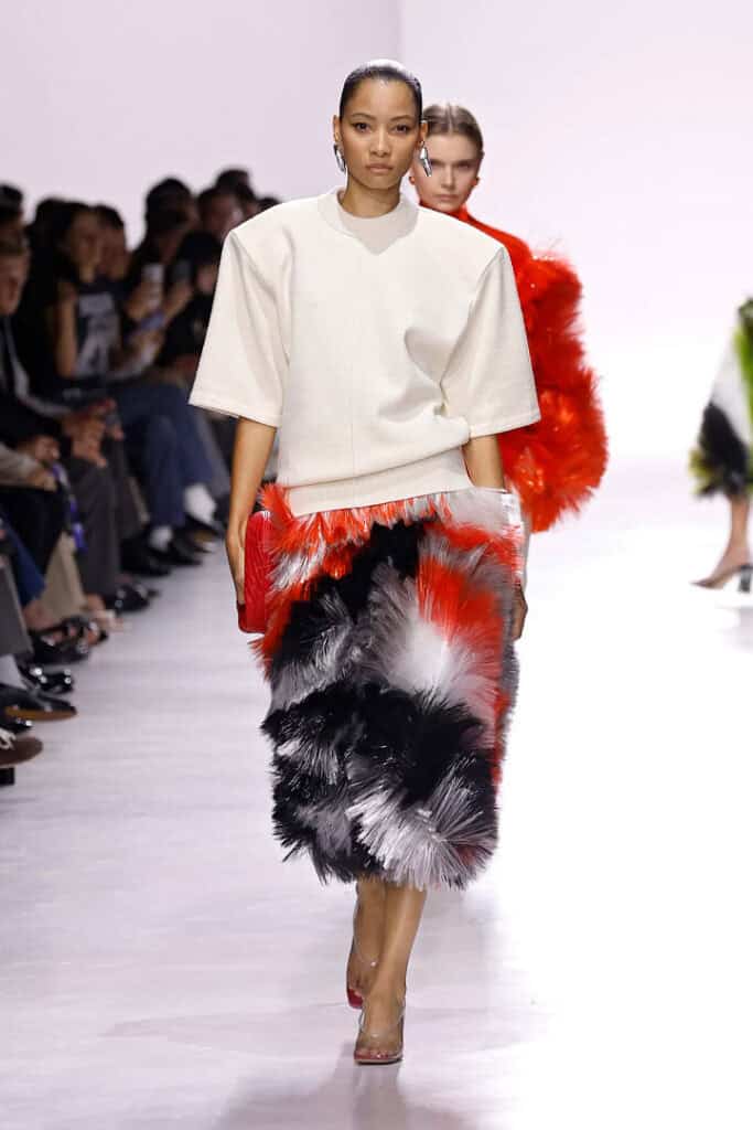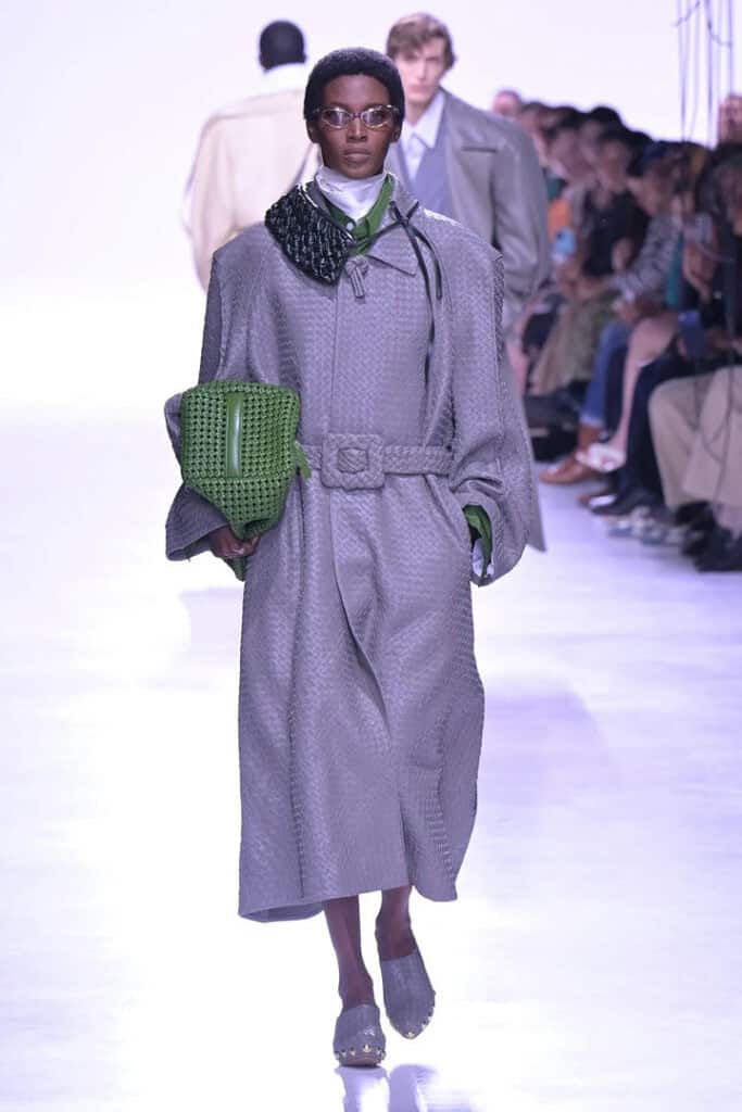 When comparing Trotter’s debut collection to Blazy’s past shows, one might notice a certain absence of novelty, though, of course, that has always been Matthieu’s way. Under his direction, Bottega Veneta thrived not only on beautifully made clothes but also on the clever little trinkets, charms, and knick-knacks that seemed designed to go viral for all the right reasons. Those playful touches gave the brand an instantly recognisable cultural currency. Trotter, by contrast, appears less concerned — at least for now — with that kind of marketable whimsy. This is not to suggest she won’t eventually come to embrace it, but this first outing was deliberately focused on the garments themselves rather than accessories engineered for buzz. The result was a collection that underscored her command of tailoring and materials, showcasing the kind of purity and seriousness that signals confidence in her craft. And the clothes were indeed exceptional. Despite the absence of gimmicks, the luxury market for Bottega’s ready-to- wear remains strong, even with its notoriously hefty price tag, and Trotter seems determined to strengthen it further.