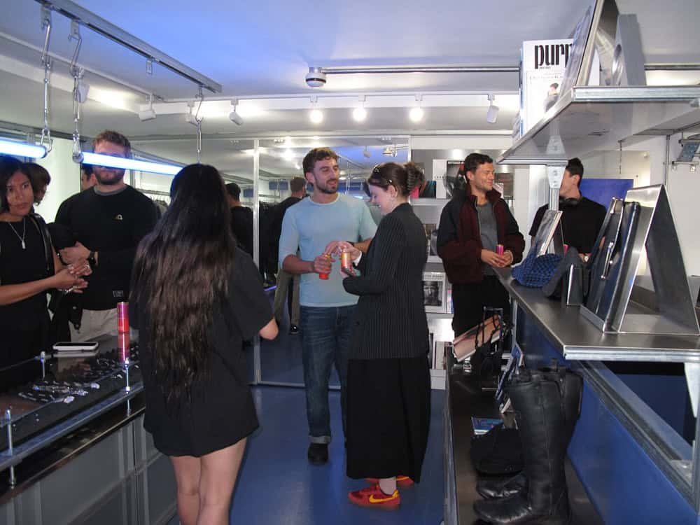 This vision draws heavily on London’s underground scene in the 80s and 90s. “It was brimming with new designers,” Demetriou says. “Along with The Blitz Kids, WAG Club, and Leigh Bowery, there were DIY booms coming from the Kensington Markets and West London. Stores like Sign of the Times and Vivienne Westwood’s Sex were shaping what a store should be—even now.”
