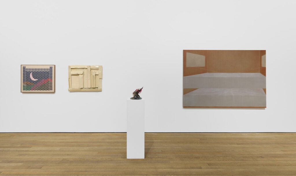 FP: Placing contemporary artists alongside figures who shaped spatial thinking for decades is really energising. I was also excited to bring in artists who haven’t appeared in the wider gallery programme yet, and the larger space at No.9 Cork Street allowed that. The moment where Megan Marrin’s work hangs high above Okiki Akinfe’s monumental, curved canvas is magical, and including both Jordan Nassar and Machteld Rullens highlights their incredibly singular relationship to a material, with Jordan’s Palestinian embroidery and Machteld’s constructed cardboard — each holding memory in a very physical and architectural way.