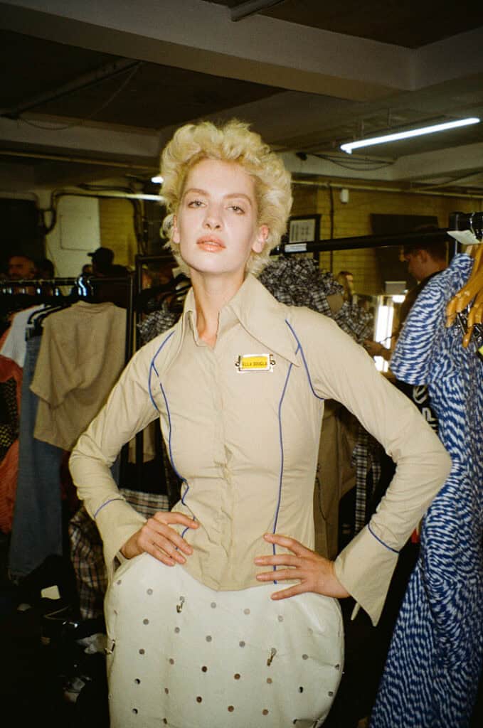 ED: I love London Fashion Week. It’s one of the only fashion weeks that truly supports younger designers. London embraces unusual creativity instead of sticking to the norms. I love the mix between fashion, art, and installation. It feels fresh and exciting, always looking for something new. It’s not afraid of change, and that’s where I see myself.