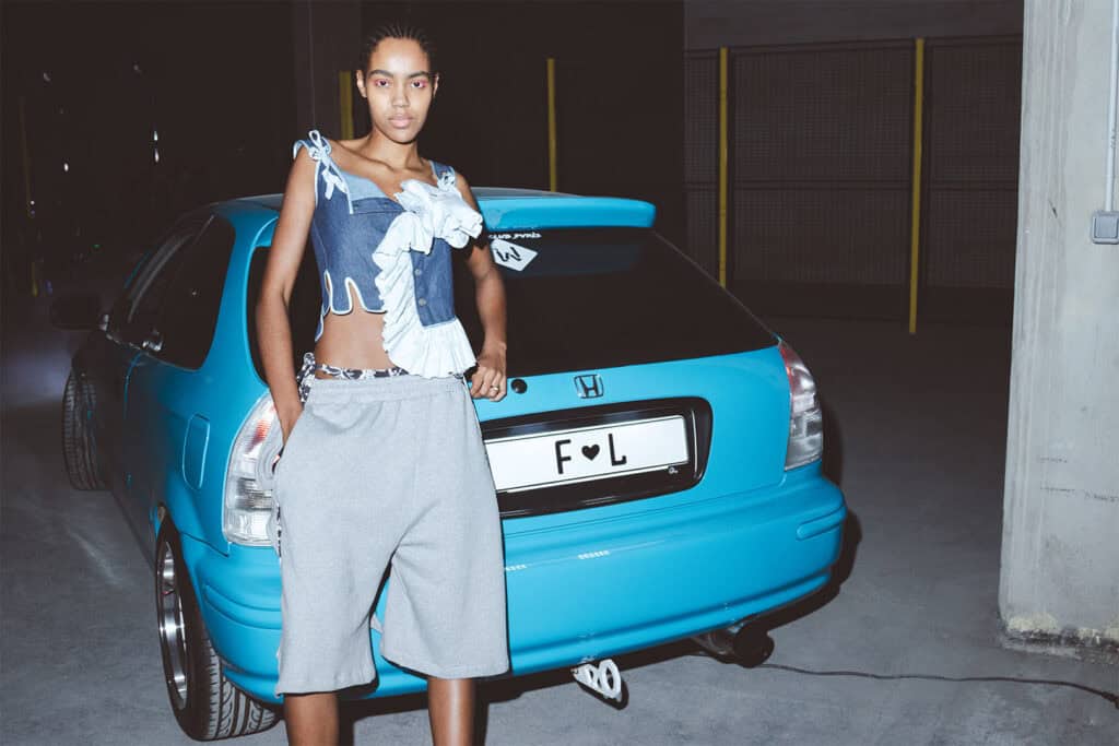 Florentina Leitner took the stage (or rather, reimagined parking garage) in Paris at 88 Rue de la Roquette on October 4th. The collection entitled “My Heart Will Go On” presented audience members with a whispered love song – lingering in the thralls of a summer romance slowly waning in the shifting of a new season. Leitner’s SS26 collection was inspired by Harmony Korine’s cult classics Gummo and Spring Breakers. Think: doomed crushes, hot nights, teenage debauchery, and grit, for better or worse… All encased in an unnameable innocence, and similar amount of chaos. Leitner’s offerings present a feeling that these sentiments could live forever. But we regret that the sun’s aching rays will eventually peek up. A reminder – that we took it too far again, and suddenly, it’s clear the final goodbye was always in sight (we just refused to acknowledge it for a while).