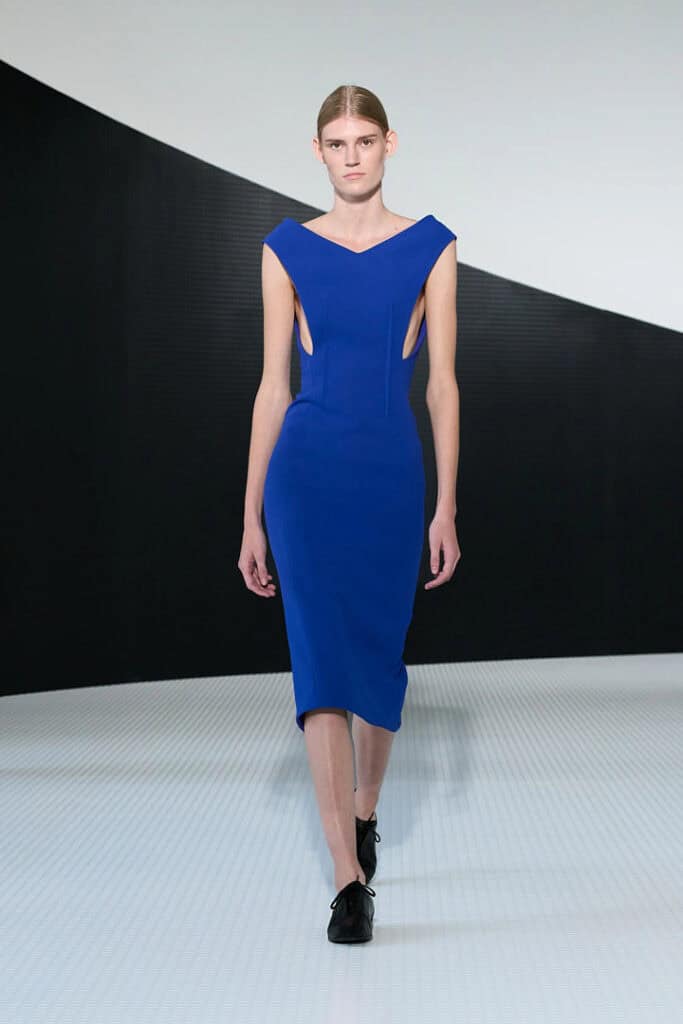 Colour, too, played its part. Where one might expect the monochrome rigour of classic Jil, Bellotti surprised with jolts of bold, bright hues – electric blues, fire reds – that gave the collection its pulse. Without them, the risk was flatness; with them, the collection breathed with life and tension.