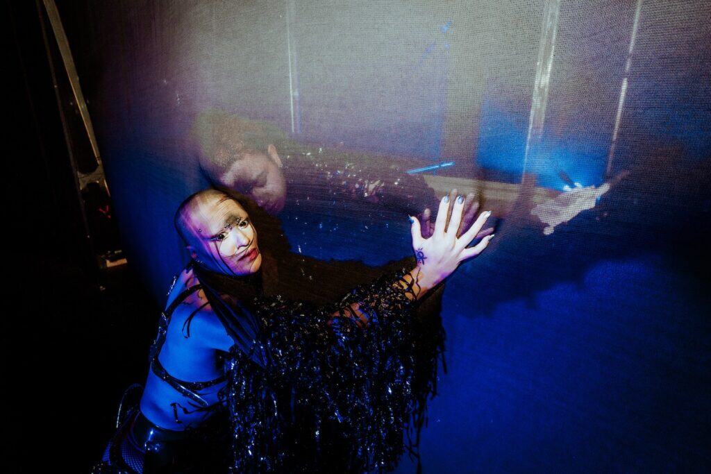 Jamie: The Pit is fantastic – it’s such a versatile space – a black box with marvellous technical possibilities and a fantastic team behind it. For Subverse, as the director I wanted to think about what it means to be working underground, literally deep in the Barbican’s subterranean belly, as well as metaphorically. To create something that felt like a lost or forgotten space, an abandoned world, an exclusive club, part dismantled. I thought about the Subverse as the part-made and the part-unmade, drawing on the ideas of uncertainty and superimposition of multiple states that ILĀ brought from their work as a quantum physicist. However, what really made that possible was the team at the Barbican, who designed the set and lighting in line with my vision but building it with their own expertise. I wanted somewhere that neither welcomed nor excluded the audience, that didn’t beg for its approval or charity, but where we could exist in our own exceptionality, on our own terms.