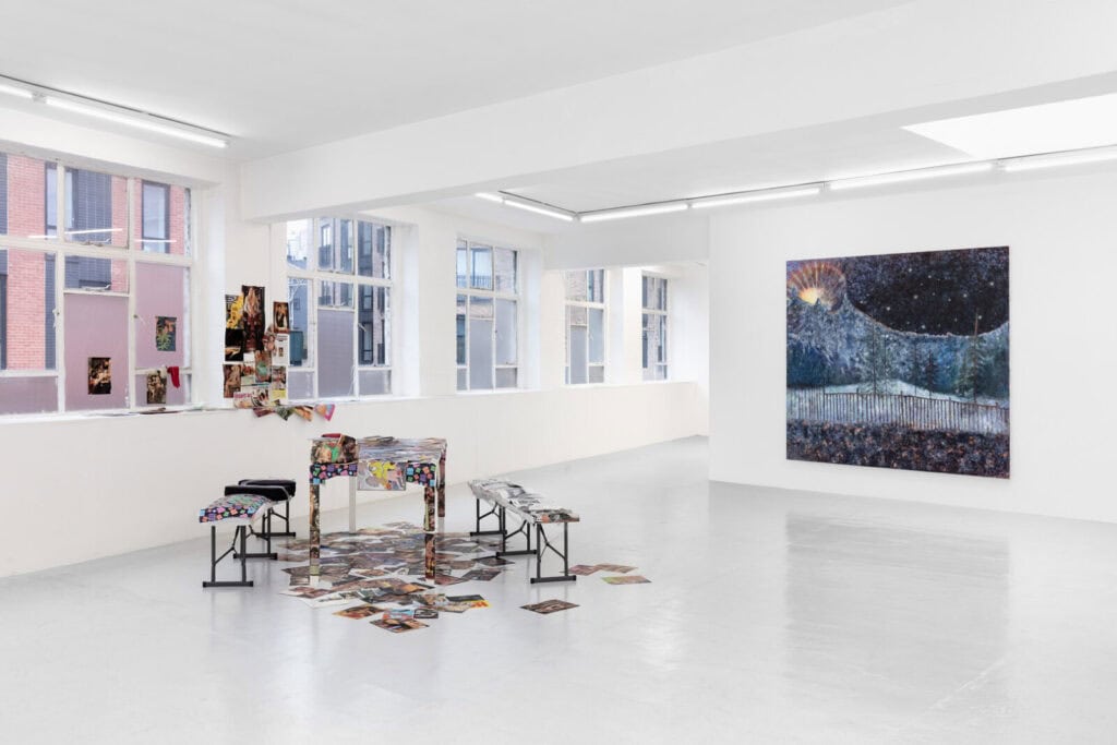 Where Easton’s curation is strongest is her emphasis on “a wanting: for connection, for excess, for beauty, or for escape,” which drives many of the artworks on show. An ethereal landscape from Lara Shahnavas is rendered in dreamlike blues and browns, backgrounded by a fenced mountain, which feels just out-of-reach on the monumental canvas. In Łukasz Stokłosa’s ‘Stockholm’ (2025), an intimately scaled carriage is foregrounded in a bright yellow over a murky midnight – a longing for something, just beyond the precipice of the moment.