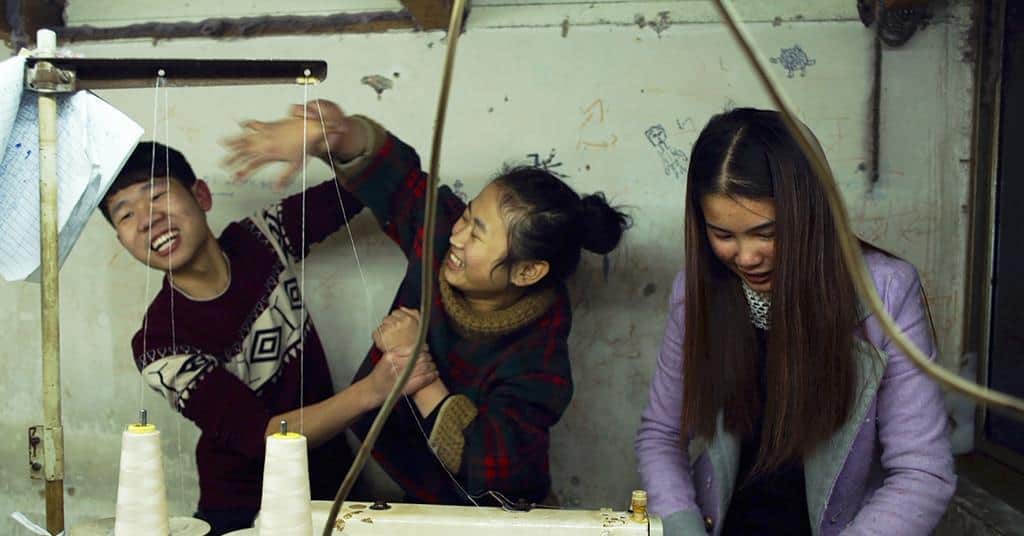 Of course, Youth carries its own connotations in English. Youth is rebellion, freedom, innocence and a precious commodity that, to many, seems to vanish all too soon. Screened in the UK for the first time in full at the Institute of Contemporary Arts, I was struck by the dissonance of a middle-class, highbrow London audience and how they might receive the images of youth that Wang captures across the three films. Shot between 2014 and 2019, the trilogy follows the lives of migrant workers in Zhili, a town in Huzhou City around 148 km from Shanghai. One of the largest centres for children’s garment manufacturing in the world, the town’s estimated 18,000 workshops employ around 300,000 machinists, most of whom come from rural provinces. Over 15-hour shifts, their piecework returns them low wages and they sleep in cramped dormitories with their personal effects piled around them. A majority of them, in Youth at least, are around 17-20; some of them are as young as 15. Are we seeing here a youth wasted, squandered under fluorescent lights and constant rattle of sewing machines?