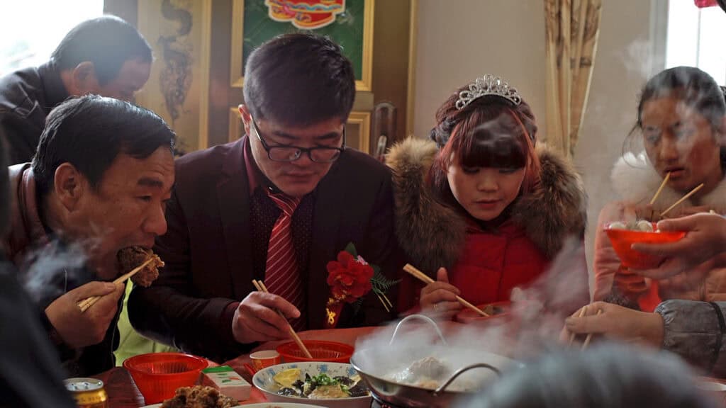 It’s clear that his interest lies in Zhili as a sociological phenomenon, a patchwork of individuals whose threads intersect, entangle and drop away. In Spring and Hard Times, we flit between small stories at 20 to 30 minute intervals which create a curiously anonymising effect, making it easy to lose track of narratives with little conclusion to the troubles and arguments that arise. There is endless footage of labour, including 16-year-old girls cutting bunting-threads of a fabric with robotic precision and mesmerising dexterity. Homecoming takes a closer look at a selection of extended families, taking us out of the city and into the rural communities that serve as a metonym for the hometowns of all the migrant workers we’ve seen so far. After the visually close scenes of cluttered workshops, tight industrial roads and spartan bedrooms, the mountainous backdrops of this film are breathtaking, even dizzying in their expansiveness.