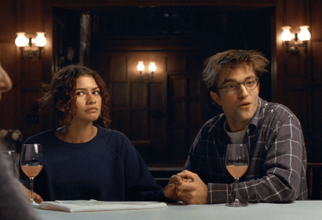Zendaya (left) and Robert Pattinson (right) in The Drama (2026)