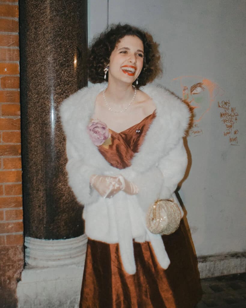 Inside the club, an old-school telephone is pressed to the DJ’s ear. I’m informed that it’s emblematic of the DIY working class origins – back in the day, the kids messing around with vinyl couldn’t spare the cash for fancy equipment, so they used a landline as makeshift headphones. What strikes me is that the attendees were raised like this. Their parents and grandparents are Mods. It’s a lifestyle, stitched into their taste, values and family history, not just a monthly club night. One glamorous girl in a long vintage gown and white fur, slightly bending the rules to go 1940s, says she dresses like that on a daily basis.